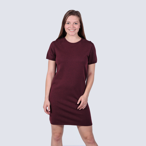 This boxy hand-knit t-shirt dress made from a sustainable eco-viscose blend is sustainably crafted with one-piece seamless construction. The neck, sleeve edge, and hem are finished with a sleek tubular trim.